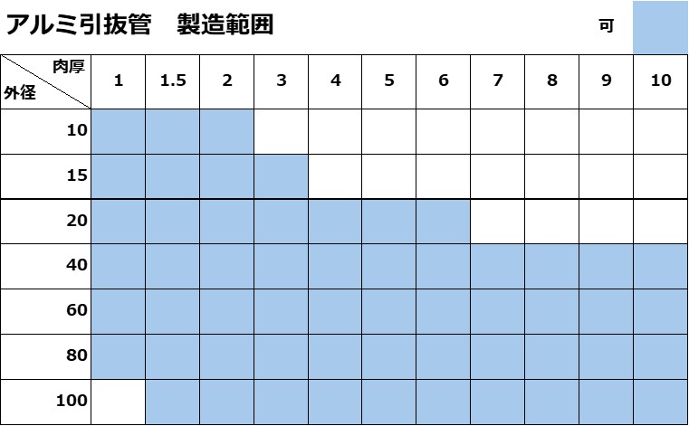 ・合金、調質によって製造範囲は異なりますのでお問い合わせください