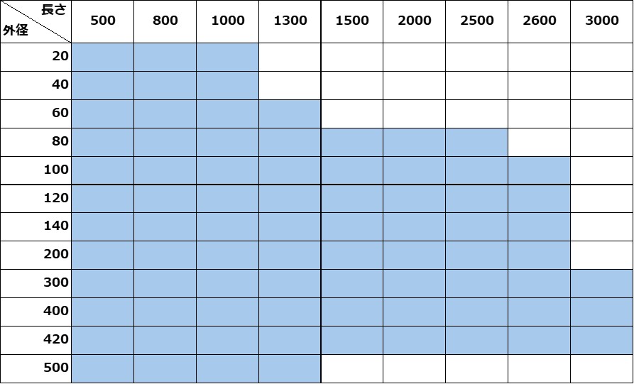 小径から大径まで、幅広い内径寸法に対応可能です。